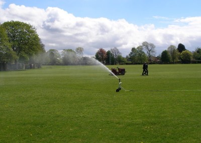 The works included using low impact trenching methods to carry out several hundred meters of trenching to install the irrigation main line. This included lifting and re laying the sports turf to a standard were all traces of trenching completely disappeared within a few months.