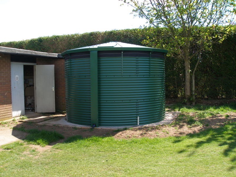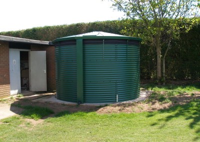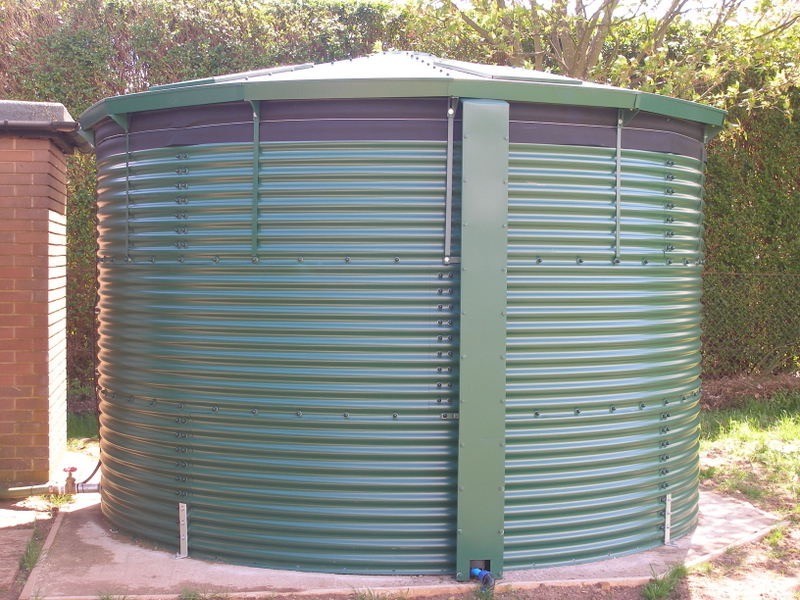 • Job Description Steel tank delivering water to sports field irrigation systems. Job includes laying suitable concrete base. Tank is fitted in colour finish with a steel roof.